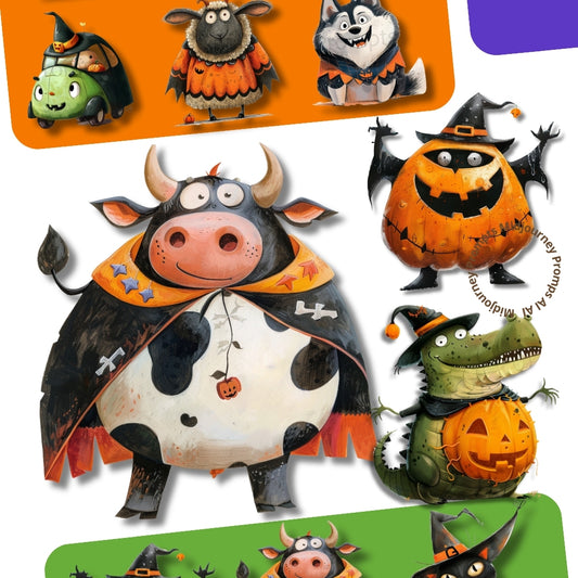 Christmas Digital Postcards Halloween Animals and Midjourney Prompt Commercial Use