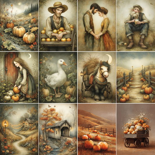 Midjourney V 7 Prompts for DUAL Pumpkin Farm Harvest Junk Journal