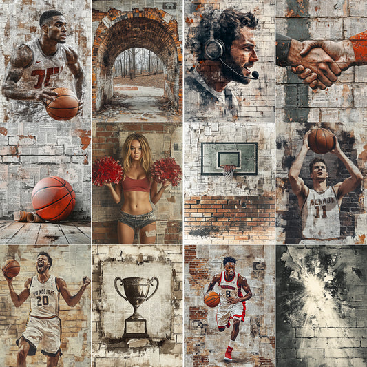 Midjourney V 6.1 Prompts for Basket Madness Junk Journal Pages