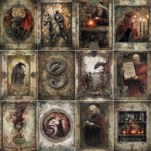 Midjourney V 7 Prompts for DUAL Medieval Occult Dark Alchemy Pages