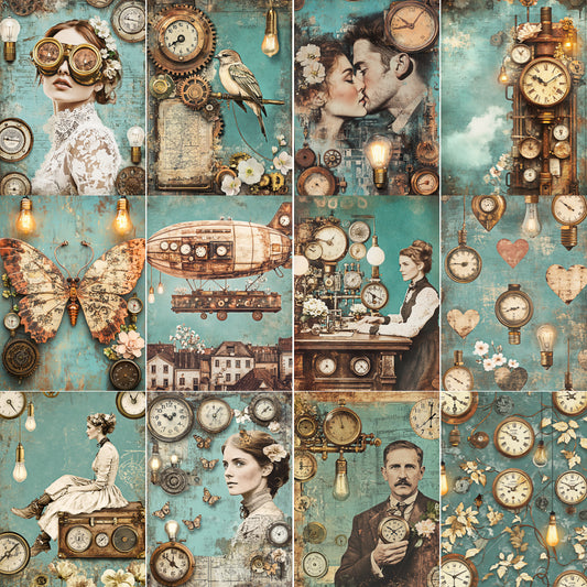 Midjourney V 6.1 Prompts for Industrial Steampunk Floral Junk Journal