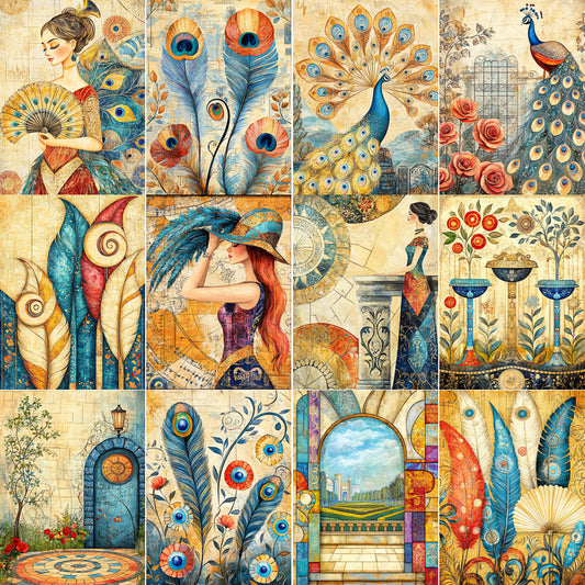 Midjourney V 6.1 Prompts for DUAL Peacock Junk Journal Pages Kit
