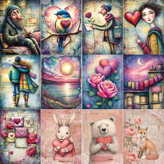 Valentines Day Stickers Love Watercolors Digital Art and Midjourney Prompt Commercial Use