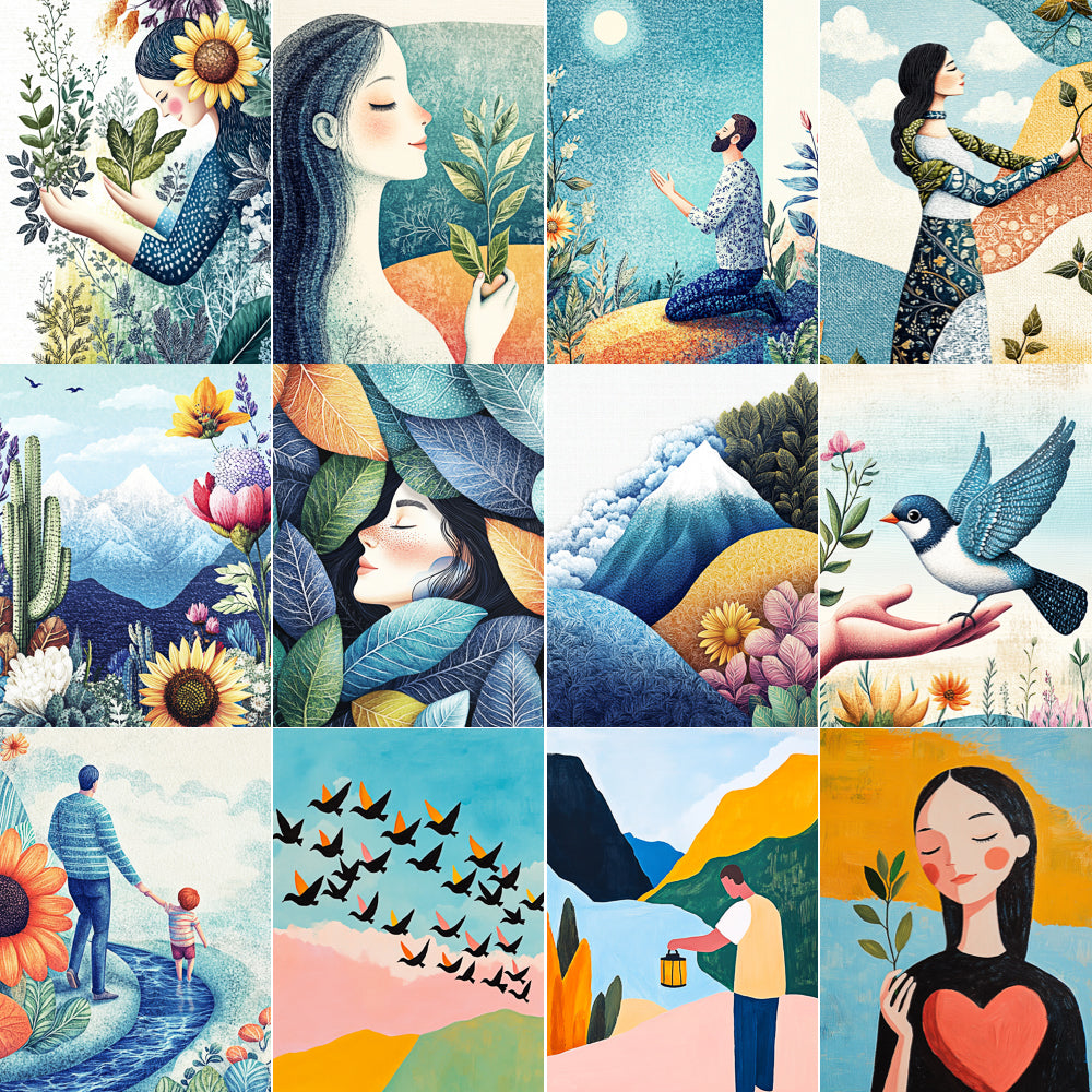 This .zip file contains 9 digital art images .PNG Solid Background, plus the master prompt midjourney formula for creating more. No special software is needed to download and open images; however, if you want to create more, a image generator AI subscription is necessary for the prompt. Our store has no affiliation with any AI image generator or it's subscription. You have NO obligation to subscribe. You only subscribe if you want to create additional images of the same style on your own, because you will have the master prompt formula.